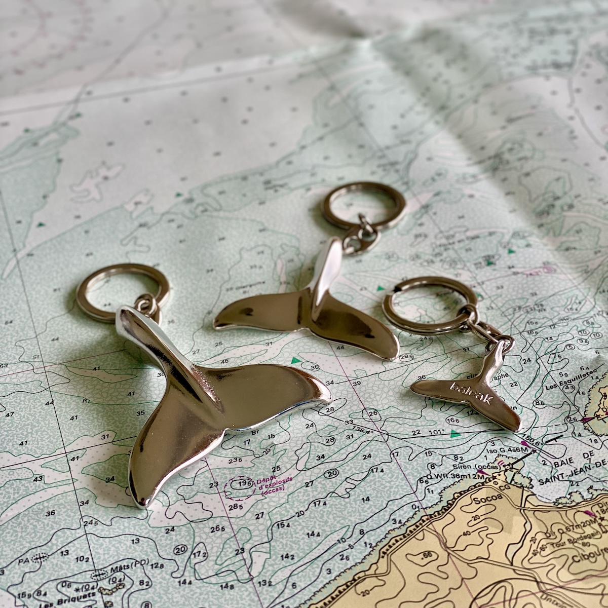Miniature de nageoire caudale de cétacé Baleak montée en porte-clé.